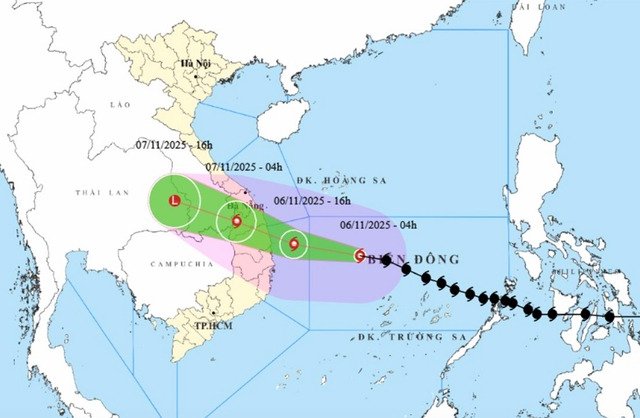 Bão Kalmaegi cường độ rất mạnh, hiện cấp 13, giật cấp 13, dự báo sáng 5/11 sẽ đi vào Biển Đông và gây đợt mưa lớn khu vực Quảng Trị - Đắk Lắk khoảng 6-9/11.