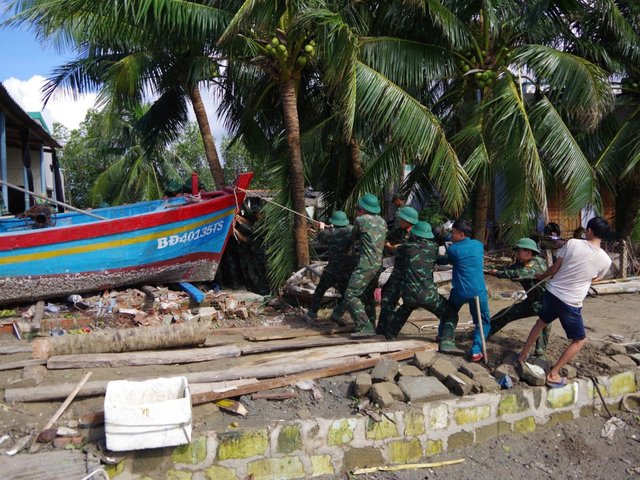 Những ngày qua, gần 1.000 cán bộ, chiến sĩ Sư đoàn 2 (Quân khu 5) chia thành nhiều hướng có mặt cùng nhân dân tỉnh Gia Lai khắc phục hậu quả bão số 13.