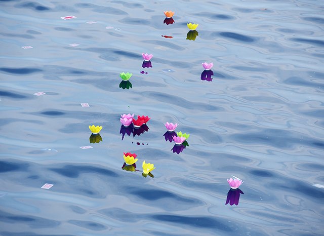 Giữa mênh mông biển trời, hàng trăm con hạc giấy, cùng với hoa đăng, lễ vật, hoa cúc dập dềnh trên sóng trôi về phía nơi các anh đã hy sinh, như lời tri ân của thế hệ hôm nay và mai sau, cùng mãi mãi một chân lý: Trường Sa, Hoàng Sa là của Việt Nam, chúng ta sẵn sàng hy sinh để bảo vệ chủ quyền biển đảo của đất nước!