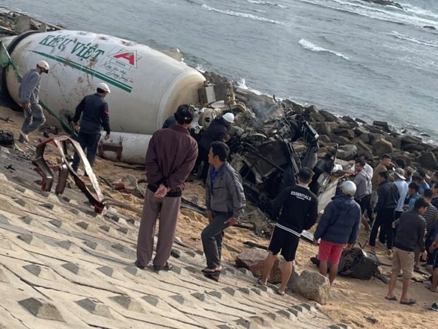 Khi xe đang xuống dốc thì bất ngờ xe trộn bê tông bị tuột, lao thẳng ra hướng biển, tông vào tường thành bờ kè chắn sóng khiến một người chết, hai người bị thương.