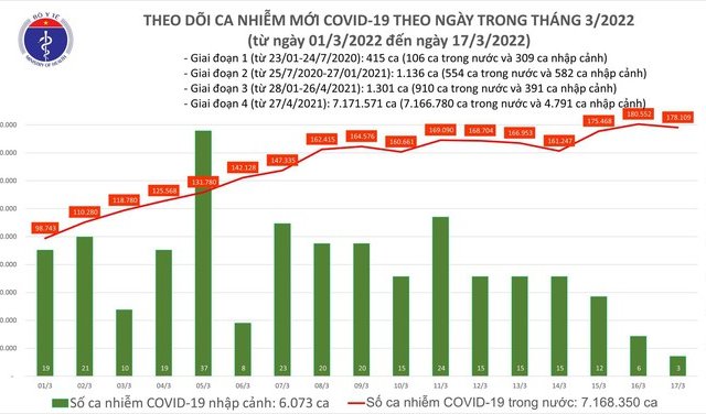 Tối 16/3, Bộ Y tế ghi nhận 180.558 ca mắc COVID-19 tại 62 tỉnh, thành phố, trong ngày Nghệ An đăng ký bổ sung 56.827 ca, Thanh Hóa đăng ký 30.155 ca.
