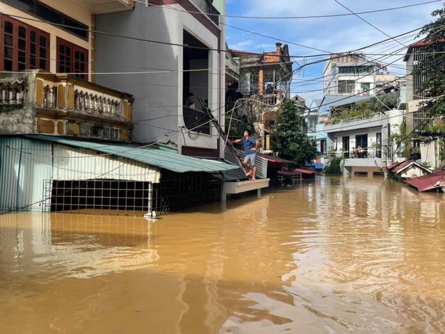 Phố trung tâm Thái Nguyên chìm trong biển nước, có nơi ngập gần nóc tầng một