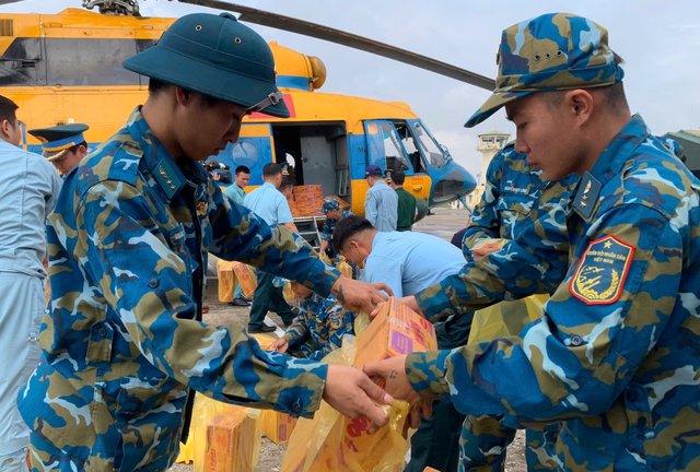 Quân chủng Phòng không - Không quân điều động 3 trực thăng thuộc Trung đoàn 916 chuyển 4 tấn hàng hoá cứu trợ tới các khu vực bị cô lập do mưa lũ tại Lạng Sơn.