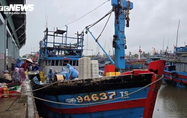 Tàu cá nối đuôi nhau cập bờ, ngư dân tất bật bán hải sản 'chạy bão' Bualoi