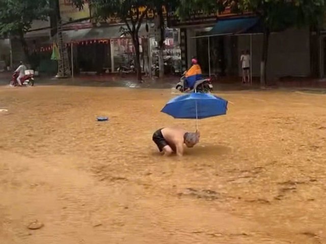 Trang 1Đường phố Lào Cai ngập sâu sau mưa lớn