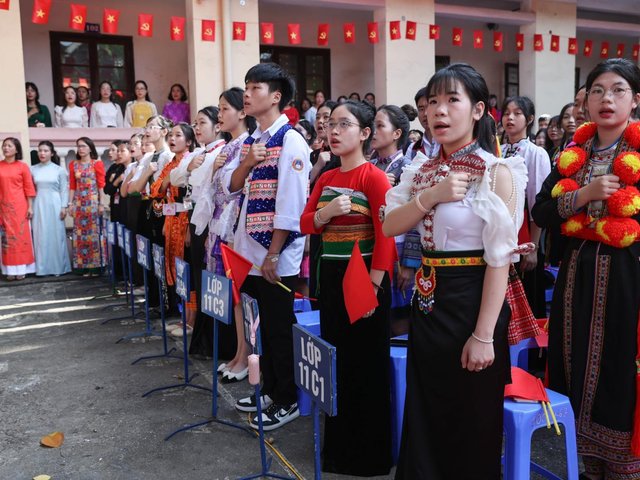 Sáng 5/9, lần đầu tiên, tất cả các cơ sở giáo dục trên toàn quốc chào cờ, hát Quốc ca cùng một thời điểm trong lễ khai giảng năm học mới 2025-2026 với sự tham dự của khoảng 1,6 triệu thầy cô giáo và gần 26 triệu học sinh, sinh viên.