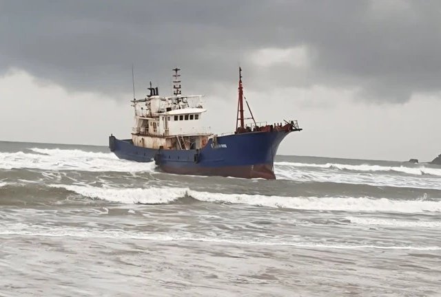 Một tàu vỏ sắt mang quốc tịch nước ngoài, không có người lái, bị mắc cạn tại bờ biển Dung Quất, tỉnh Quảng Ngãi.