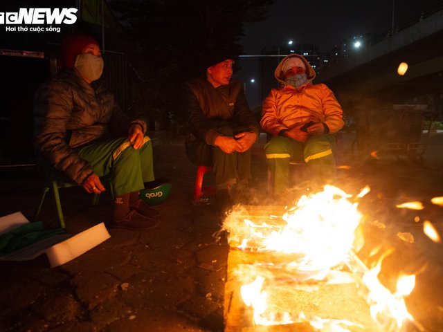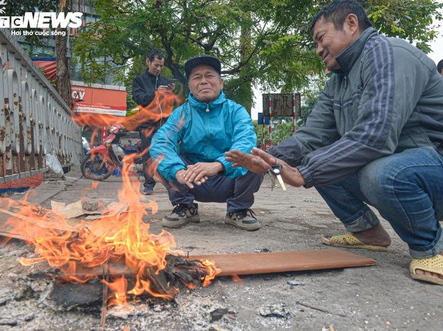 Hà Nội rét kỷ lục đầu mùa: Người lao động co ro bên bếp lửa suốt đêm