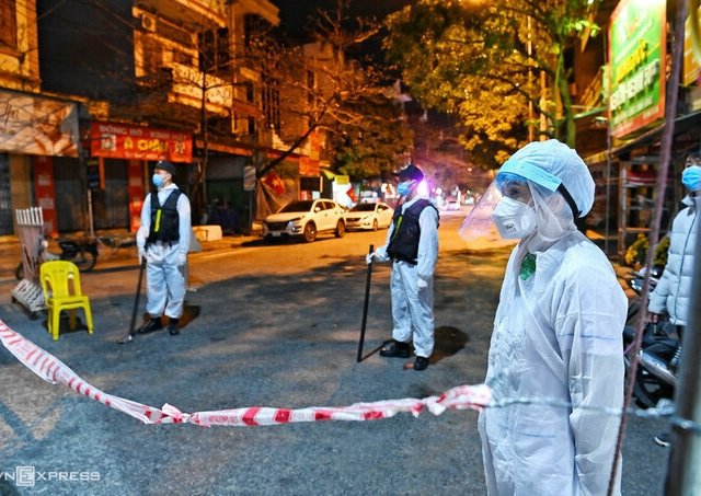 Lực lượng chức năng phong tỏa nơi ở và làm việc của nữ điều dưỡng Bệnh viện Giao thông Vận tải Hải Phòng sau khi người này có kết quả nhiễm SARS-CoV-2 .