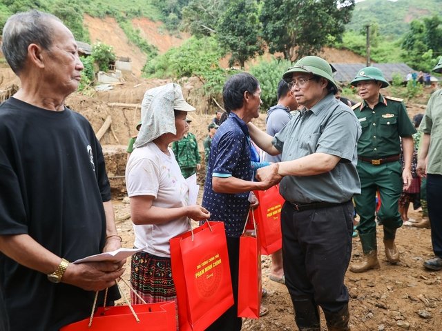 Thủ tướng và đoàn công tác thăm hỏi, động viên, tặng quà các gia đình bị thiệt hại do thiên tai tại Điện Biên, chia buồn cùng gia đình có người thân thiệt mạng.