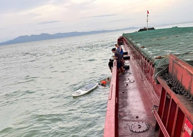 Sau gần 13 giờ đồng hồ gặp nạn và lênh đênh trên biển, anh Nguyễn Thanh Tùng cùng con gái 6 tuổi may mắn được ứng cứu.