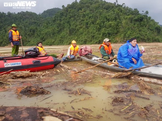 Lượng rác khổng lồ tràn ngập khắp mặt sông Leng và lòng hồ sông Tranh 2 cùng mưa to khiến việc tìm kiếm nạn nhân mất tích sau sạt lở ở Trà Leng phải tạm dừng.