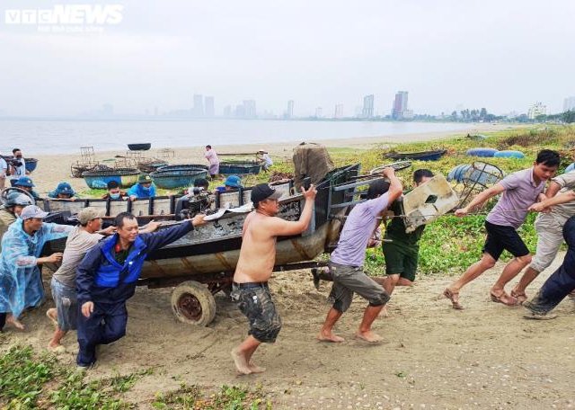 Hàng trăm ngư dân chạy đua trong mưa chống bão số 5 đang đến gần