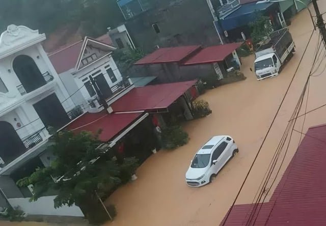 Lạng Sơn hóa biển nước sau cơn mưa lớn, nhiều ô tô mắc kẹt trên đường