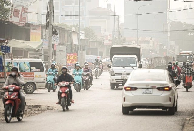 Hà Nội mịt mù sương kèm bụi mịn, người dân vật lộn với rét và ô nhiễm