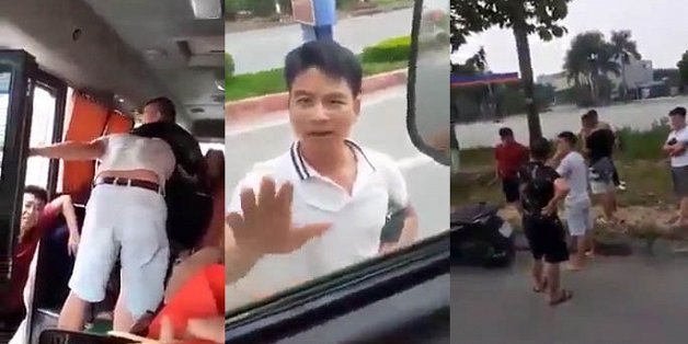 Dù trên xe có hành khách nhưng những tên côn đồ vẫn ngang nhiên trèo lên xe đánh phụ xe và tài xế lái xe khách.