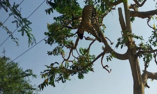Báo hoa mai bất cẩn vướng vào đường dây điện 110 kV ở Ấn Độ trong lúc mải đuổi theo con mồi và bị giật chết.