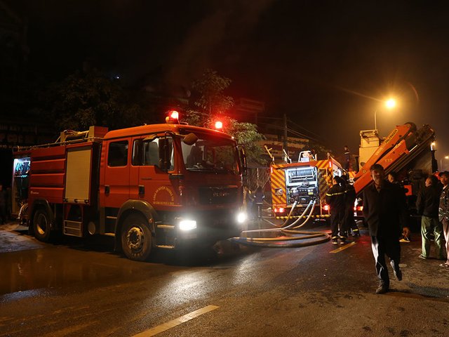 Ngọn lửa bao trùm ngôi nhà 5 tầng trong hơn một tiếng, đến 21h30 nạn nhân cuối cùng được cảnh sát đưa ra ngoài bằng thang.