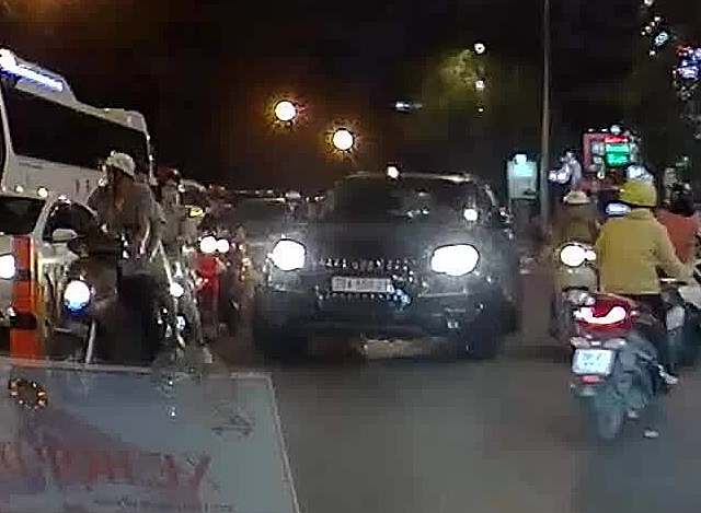 Nữ tài xế lái xe sang chen qua làn ngược chiều chờ đèn đỏ