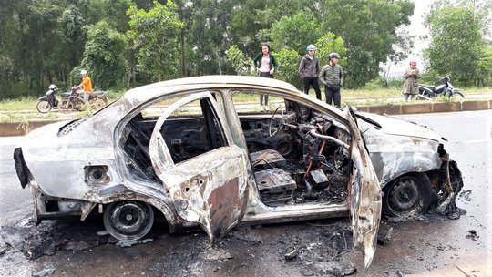 Đang chạy trên đường, xe ôtô bốc cháy ngùn ngụt