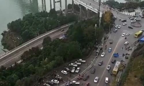 Chiếc xe buýt ở thành phố Trùng Khánh rơi xuống sông Dương Tử sau khi va chạm với ôtô, khiến ít nhất hai người thiệt mạng.