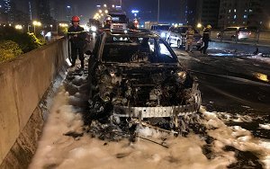Trang 1Ô tô Mazda cháy trơ khung sắt trên đường vành đai 3, Hà Nội
