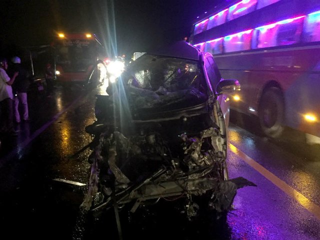 Vượt xe khách, ôtô 7 chỗ bị tông bẹp dúm, 1 người chết