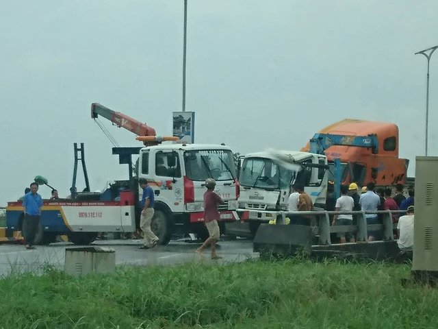 Trang 1Xe container đâm nát ô tô 4 chỗ, cao tốc Hà Nội - Bắc Giang tắc 4km