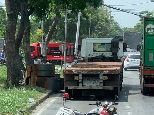 Xe tải thắng gấp, cuộn sắt rơi trúng người bán vé số