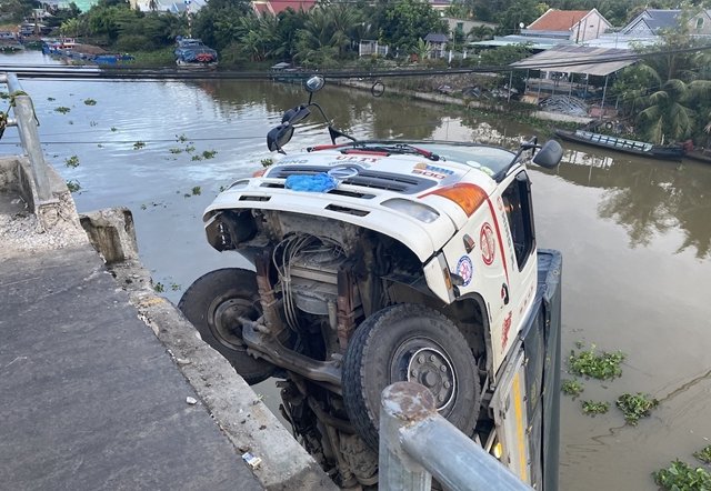 Dù thấy biển cấm nhưng tài xế giải thích do xe đã lên cầu nên cố cho qua, sau đó dẫn đến việc nhịp giữa dài 33 m cầu dân sinh Thiên Hộ ở Tiền Giang, bị sập rơi xuống nước.
