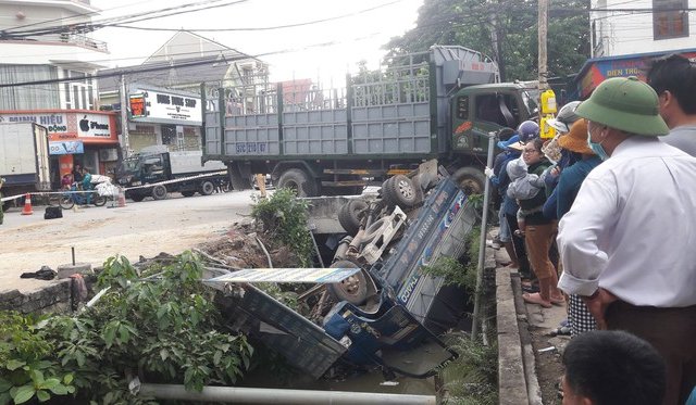 Xe tải bị đâm rơi xuống kênh nước, 1 người tử vong
