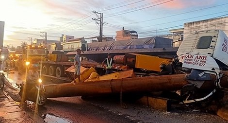 Rạng sáng nay (13/7), một chiếc xe đầu kéo chở sắt thép lưu thông trên Quốc lộ 1A từ TP HCM về miền Tây bất ngờ mất kiểm soát leo lên dải phân cách, lượng lớn sắt thép đổ ra đường khiến người đi đường hoảng vía.