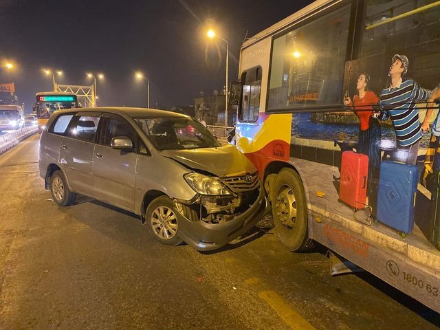 Khoảng 21h05 tối 25.11, khi đang lưu thông trên cầu Chương Dương theo hướng về Long Biên xe buýt Bắc Hà, BKS 29B - 114.93 bất ngờ va chạm với một xe ôtô 7 chỗ đi theo chiều ngược lại.