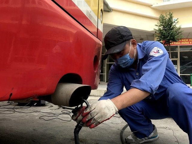 Cơ quan chức năng tiến hành đợt kiểm tra khí thải đối với xe khách, xe buýt tại 4 bến xe chính và xe tải tại 2 trục đường lớn.