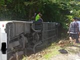 Chiếc xe đang chở 28 người ở Vườn quốc gia Xuân Sơn, Phú Thọ thì bất ngờ bị lật nghiêng rồi lao xuống sườn núi làm 3 người chết tại chỗ.