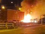 01/05/2022 21:56Xe Range Rover bốc cháy khi đang lưu thông trên cao tốc