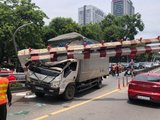 26/03/2025 14:55Xe tải Van mắc kẹt tại barie cầu vượt Thái Hà khiến giao thông ách tắc
