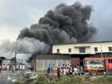 Ghi nhận tại hiện trường, có ít nhất 3 xưởng bị cháy. Điều đáng nói 3 xưởng sản xuất gỗ, keo, nón bảo hiểm là vật dễ cháy nên gây khó khăn cho công tác chữa cháy.