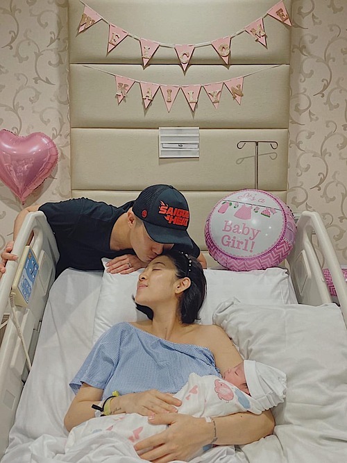 | Vợ chồng Yumi Dương hạnh phúc đón con gái đầu lòng. |